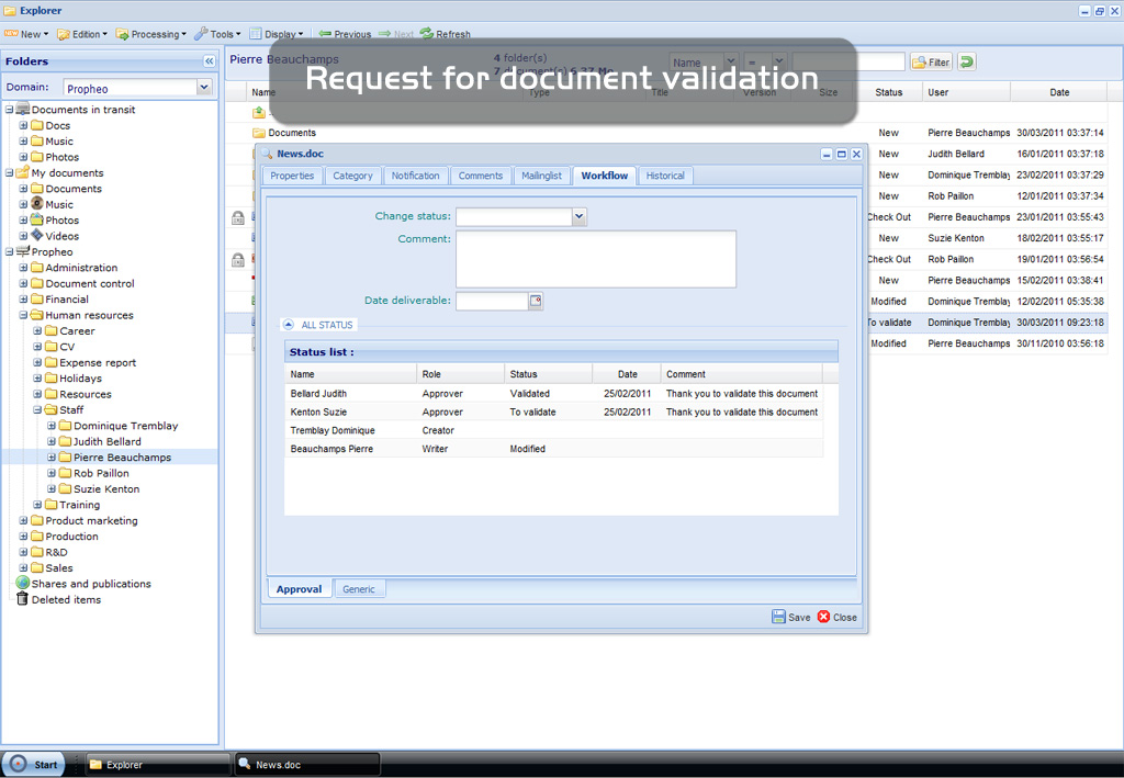 Configure and view your reports (i.e. available space, user occupation rate, document follow-up, etc.)